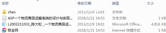 【极全网】ASP一个物流商品运输系统的设计与实现(源代码+论文)-本地下载目录1个子文件夹1个文件3个