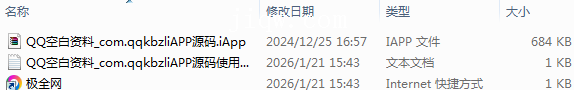 【极全网】QQ空白资料_com.qqkbzliAPP源码目录1个子文件夹0个文件3个