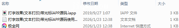 【极全网】打字效果(文本打印)带光标iAPP源码目录1个子文件夹0个文件3个