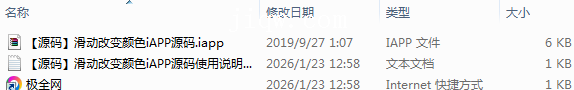 【极全网】【源码】滑动改变颜色iAPP源码目录1个子文件夹0个文件3个