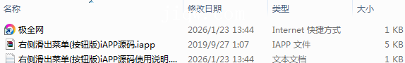 【极全网】右侧滑出菜单(按钮版)iAPP源码目录1个子文件夹0个文件3个