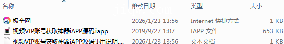 【极全网】视频VIP账号获取神器iAPP源码目录1个子文件夹0个文件3个