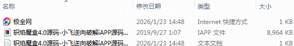 【极全网】轵焰魔盒4.0源码-小飞逆向破解iAPP源码目录1个子文件夹0个文件3个