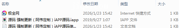 【极全网】源码 强制更新(阿伟定制)iAPP源码目录1个子文件夹0个文件3个
