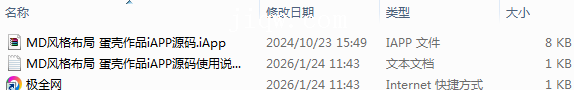 【极全网】MD风格布局 蛋壳作品iAPP源码目录1个子文件夹0个文件3个