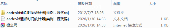 【极全网】android通话时间统计器[实例,源代码]-本地下载目录1个子文件夹1个文件2个