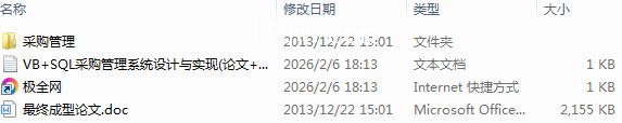 【极全网】VB+SQL采购管理系统设计与实现(论文+源代码)-本地下载目录1个子文件夹1个文件3个