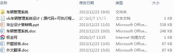 【极全网】vb车辆管理系统设计(源代码+可执行程序+论文+开题报告+外文翻译+答辩ppt)-本地下载目录1个子文件夹1个文件6个