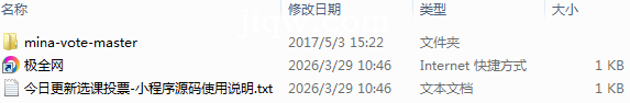 极全网】今日更新选课投票-小程序源码目录1个子文件夹1个文件2个