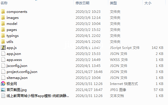 极全网】线上教育商城小程序app模板-纯前端静态小程序源码目录1个子文件夹6个文件9个