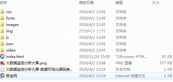 极全网】大数据监控分析大屏-数据可视化源码目录1个子文件夹7个文件4个