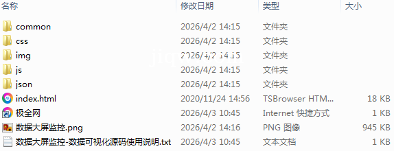 极全网】数据大屏监控-数据可视化源码目录1个子文件夹6个文件4个