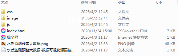 极全网】水质监测预警大数据-数据可视化源码目录1个子文件夹3个文件4个