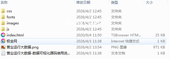 极全网】营业运行大数据-数据可视化源码目录1个子文件夹4个文件4个