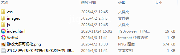 极全网】游戏大屏可视化-数据可视化源码目录1个子文件夹3个文件4个