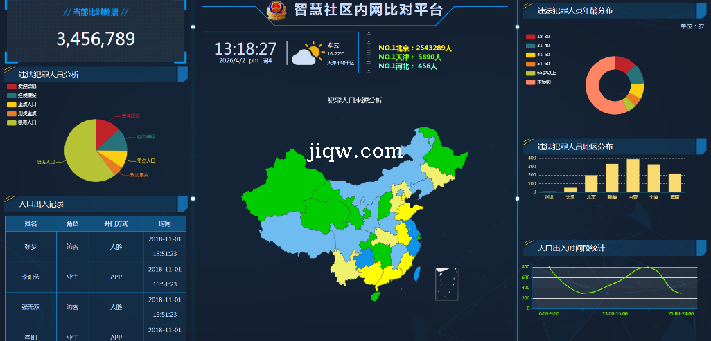 智慧内网比对平台大屏-数据可视化源码-极全网