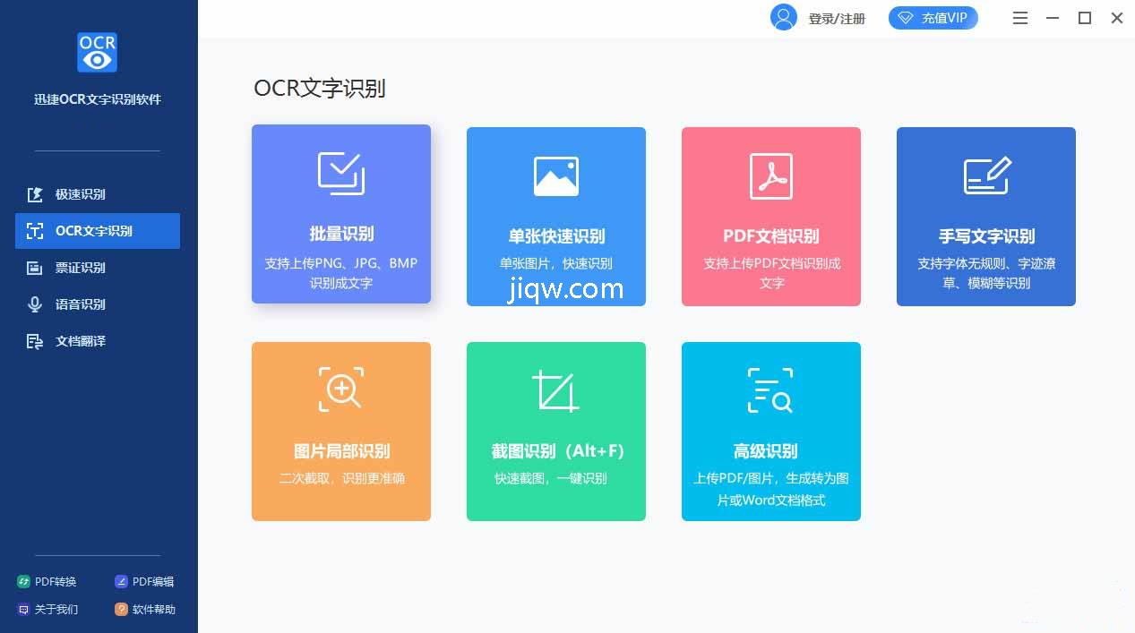 迅捷OCR文字识别软件是一款智能化的OCR图片文字识别软件。支持PDF识别、扫描件识别、图片文字识别、CAJ识别、票证识别、图片局部识别等功能,快速解析、精准识别。方便用户随时使用,一个软件解决你的全部需求,使用起来十分方便高效,有需要的小伙伴们欢迎点击下载使用。