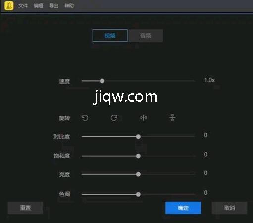 想简单编辑视频更改对比度、亮度、速度等参数?将原视频拖动到轨道后双击素材即可对参数一目了然,加快/慢视频,将视频90°旋转,后期补光等都可以在此实现,非常便捷!