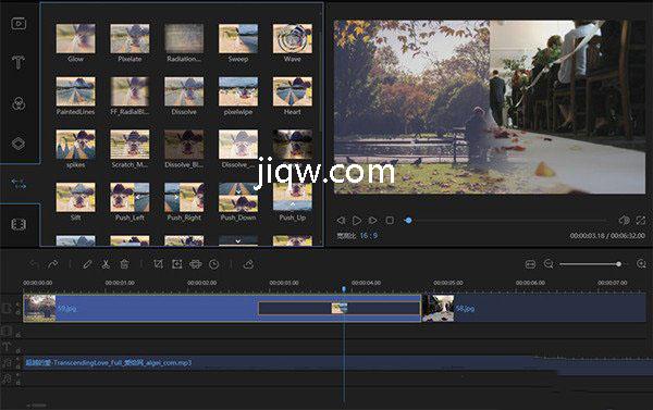 5、支持用户对转场效果进行快速的选择;