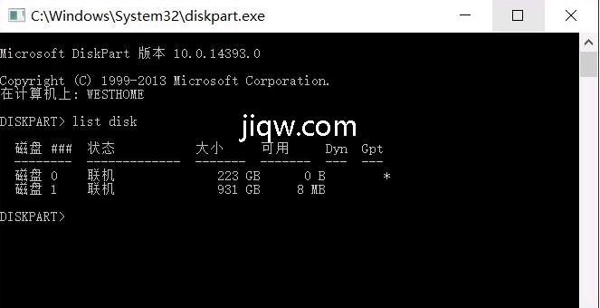 回车,显示所有在系统内的磁盘,例如小编的机器上有两块,磁盘0是系统盘,现在要隐藏磁盘2。