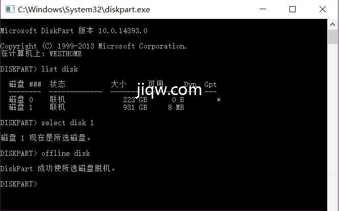 这个方法其实运行起来也很简单,操作也很便利,甚至不需要重启。不过,这个方法是令整个磁盘下线,所以,一块硬盘的童鞋请忽略……