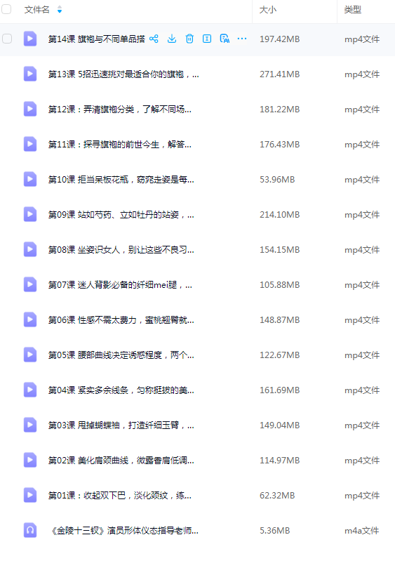 【极全网】《金陵十三钗》演员形体仪态指导老师:14节体态魅力修炼课,教你绽放独特东方美(完结)云存储资源下载目录1个子文件夹0个文件4个