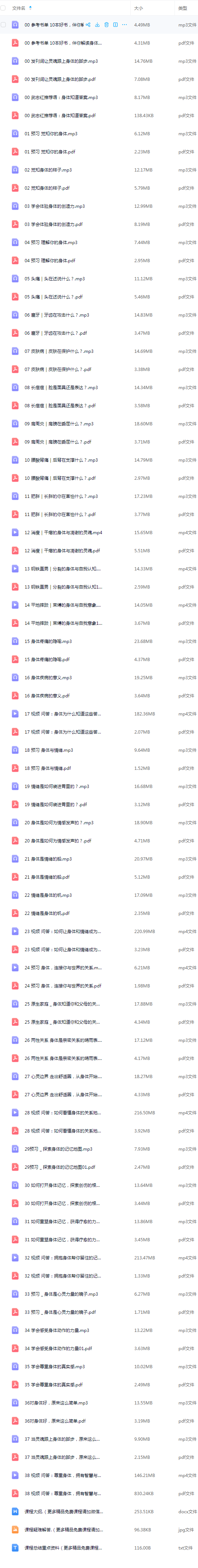 【极全网】身体心理学38讲:读懂身体的秘密,迈开改变的步伐(完结)云存储资源下载目录1个子文件夹0个文件4个