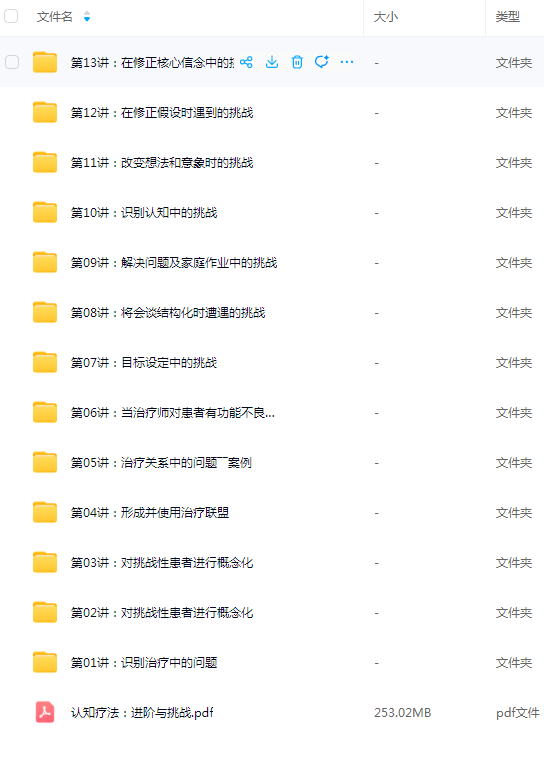 【极全网】简单心理 《认知疗法·进阶与挑战》读书会(完结)云存储资源下载目录1个子文件夹0个文件4个