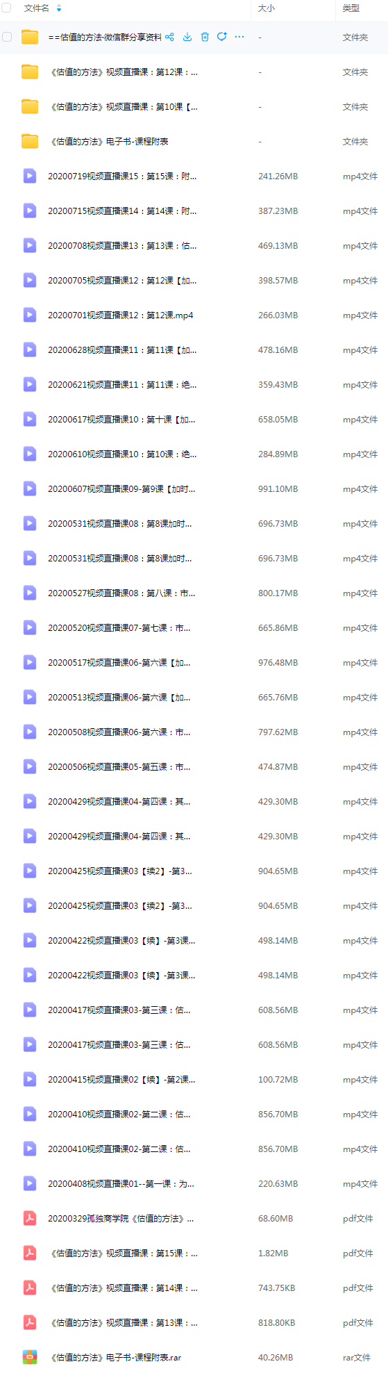 【极全网】估值的方法云存储资源下载目录1个子文件夹0个文件4个