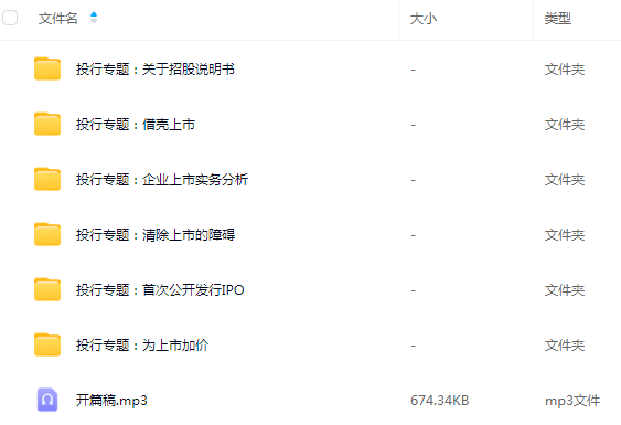 【极全网】尔街学堂丨投行专题:全面解析企业上市(完结)云存储资源下载目录1个子文件夹0个文件4个