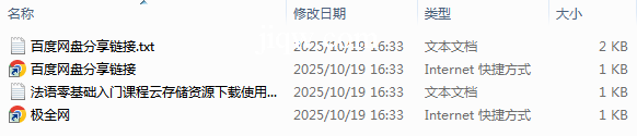 【极全网】法语零基础入门课程云存储资源下载目录1个子文件夹0个文件4个