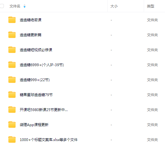 【极全网】透透糖全套课(含6999)云存储资源下载目录1个子文件夹0个文件4个