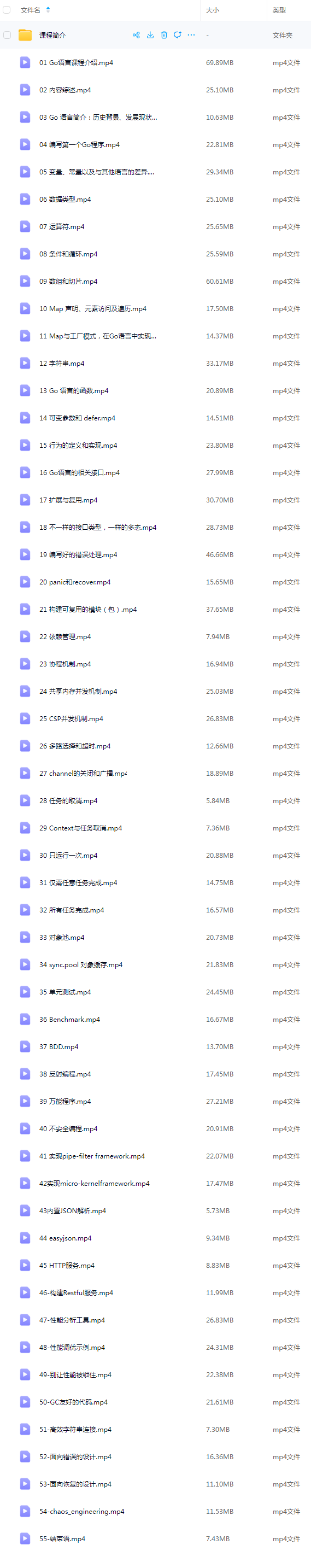 【极全网】GO语言从入门到实战【完结】云存储资源下载目录1个子文件夹0个文件4个