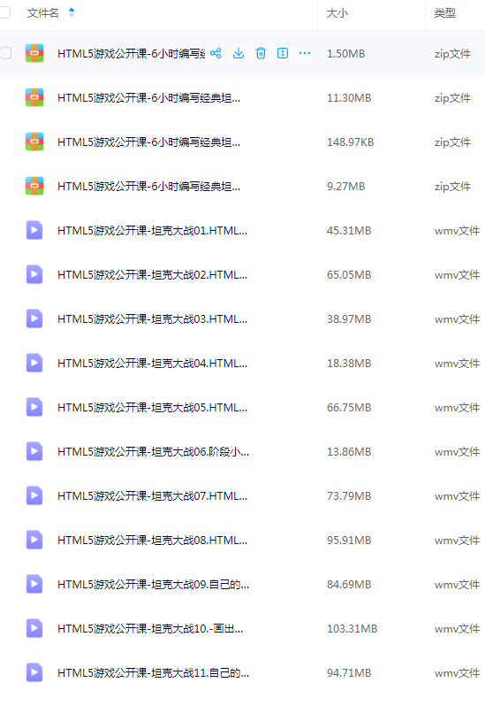 【极全网】HTML5游戏开发视频和源码开发手册云存储资源下载目录1个子文件夹0个文件4个