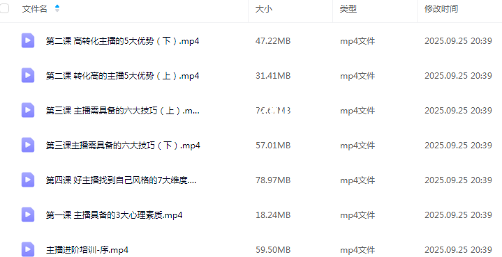 【极全网】主播进阶培训,超级星主播孵化,主播进阶必修课云存储资源下载目录1个子文件夹0个文件4个