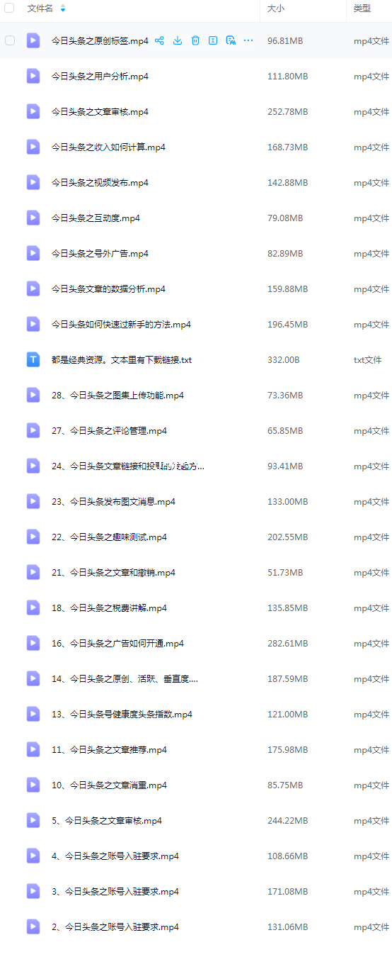 今日头条自媒体赚钱培训课(共29课)视频版云存储资源下载