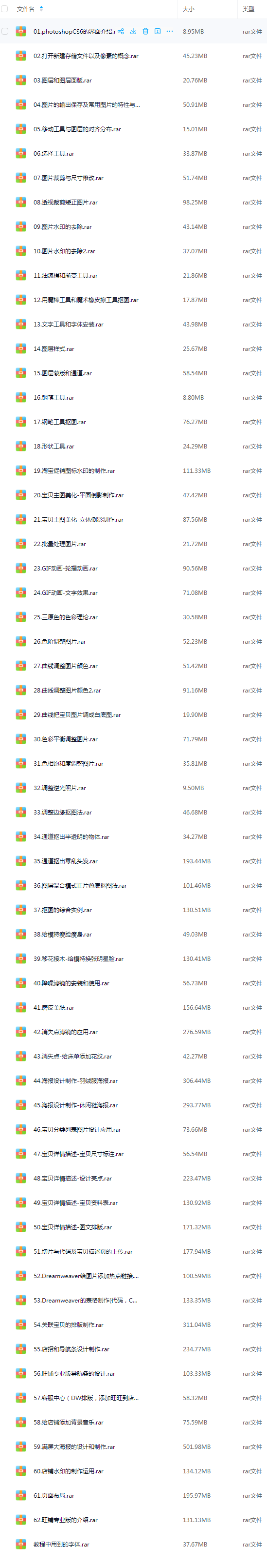 【极全网】淘宝美工高手PS教程60集云存储资源下载目录1个子文件夹0个文件4个