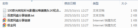 【极全网】100款光斑炫彩光影叠加唯美镜头1K视频素材云存储资源下载目录1个子文件夹0个文件4个