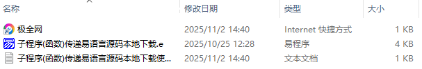 【极全网】子程序(函数)传递易语言源码本地下载目录1个子文件夹0个文件3个