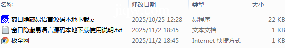 【极全网】窗口隐藏易语言源码本地下载目录1个子文件夹0个文件3个