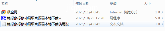 【极全网】模拟鼠标移动易语言源码本地下载目录1个子文件夹0个文件3个