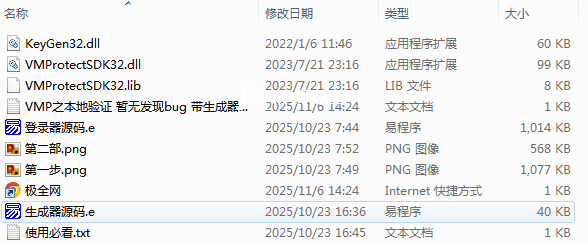 【极全网】VMP之本地验证 暂无发现bug 带生成器文件包易语言源码本地下载目录1个子文件夹0个文件10个