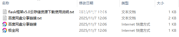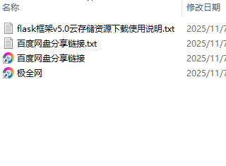 【极全网】flask框架v5.0云存储资源下载目录1个子文件夹0个文件4个