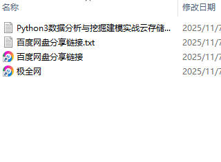 【极全网】Python3数据分析与挖掘建模实战云存储资源下载目录1个子文件夹0个文件4个