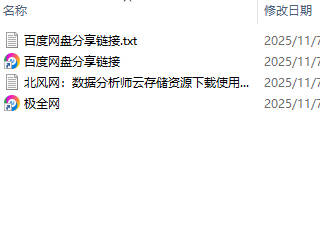 【极全网】北风网:数据分析师云存储资源下载目录1个子文件夹0个文件4个