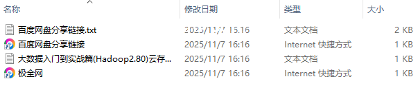 【极全网】大数据入门到实战篇(Hadoop2.80)云存储资源下载目录1个子文件夹0个文件4个