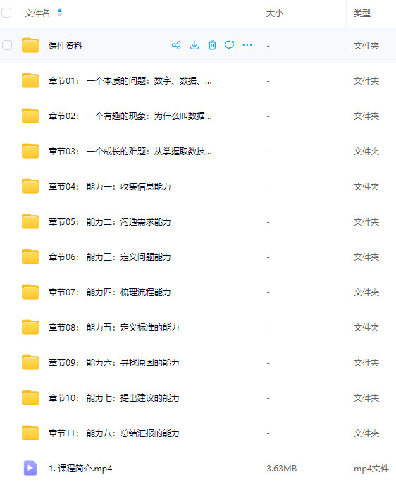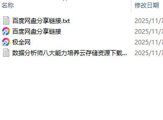【极全网】数据分析师八大能力培养云存储资源下载目录1个子文件夹0个文件4个