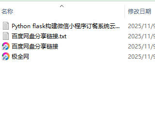 【极全网】Python flask构建微信小程序订餐系统云存储资源下载目录1个子文件夹0个文件4个