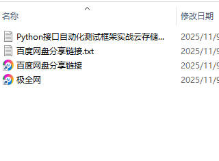 【极全网】Python接口自动化测试框架实战云存储资源下载目录1个子文件夹0个文件4个