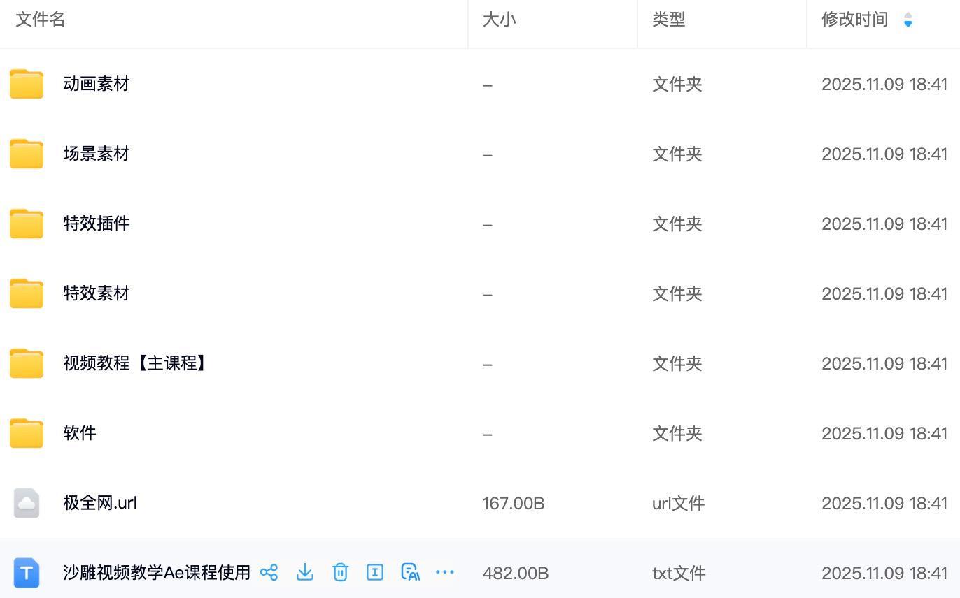 【极全网】沙雕视频教学Ae课程云存储资源下载目录1个子文件夹0个文件4个